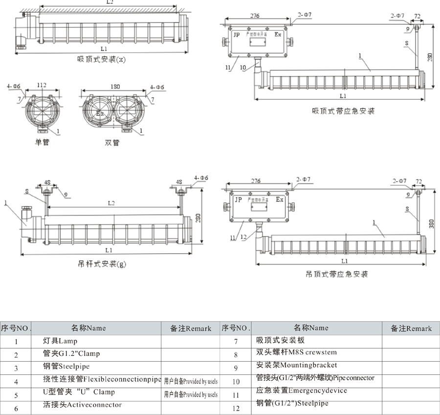 With emergency derice DYC(T8)type flame-proof explosion-proof fluorescent lamp of mounting mode are ceiling and pendant.