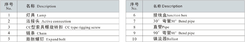 注:所有燈具出廠時(shí)均不配光源,如需要請(qǐng)注明。